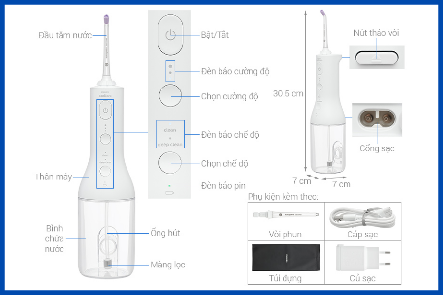 4. Thiết kế và cấu tạo chi tiết của Máy tăm nước Philips HX3826/31