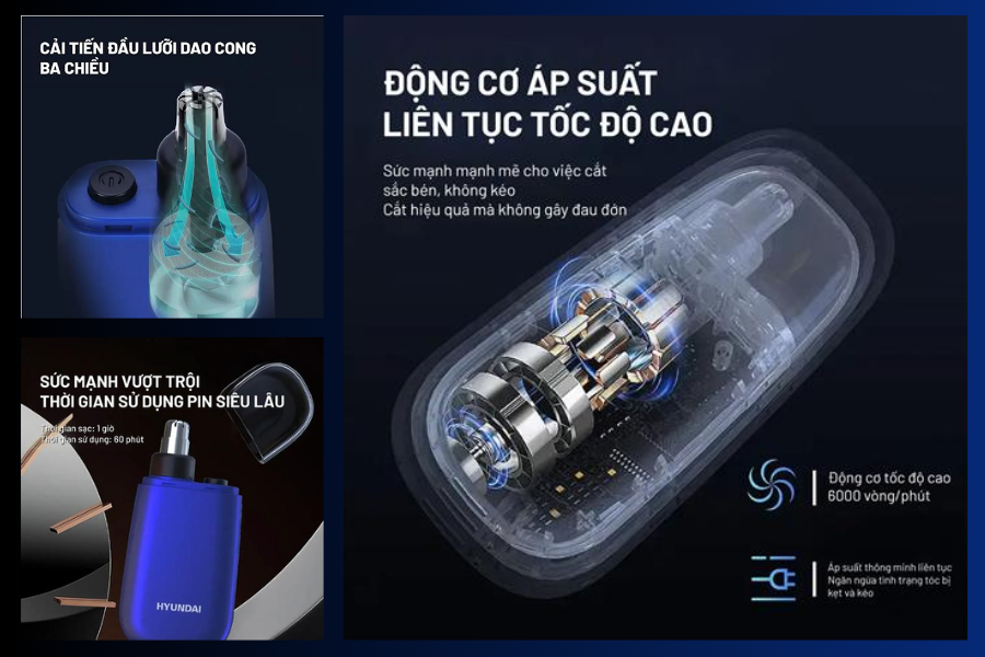 • Hệ thống lưỡi dao an toàn: Lưỡi dao 3 chiều bằng thép không gỉ giúp tỉa sạch lông từ mọi hướng 360 độ mà không chạm trực tiếp vào niêm mạc mũi, hạn chế tối đa cảm giác đau rát hay trầy xước.