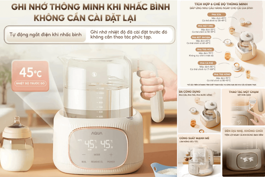 Máy tiệt trùng hâm sữa đa năng Aqua AQS-MH121T là một trong những sản phẩm tiêu biểu đáp ứng xu hướng này. Với khả năng kết hợp giữa tiệt trùng và hâm sữa, thiết bị giúp đơn giản hóa quy trình chăm sóc bé, đặc biệt trong giai đoạn đầu đời khi mọi thứ cần được kiểm soát kỹ lưỡng.