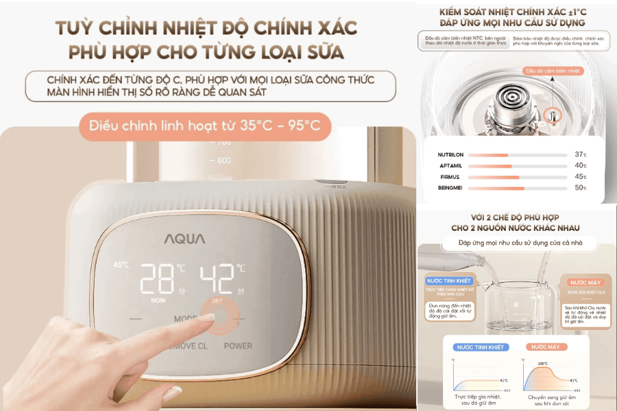 Nhiệt độ trong quá trình tiệt trùng và hâm sữa được kiểm soát ở mức ổn định, giúp hạn chế tình trạng quá nhiệt hoặc không đạt nhiệt độ yêu cầu. Điều này góp phần đảm bảo hiệu quả sử dụng cũng như độ an toàn cho bé.