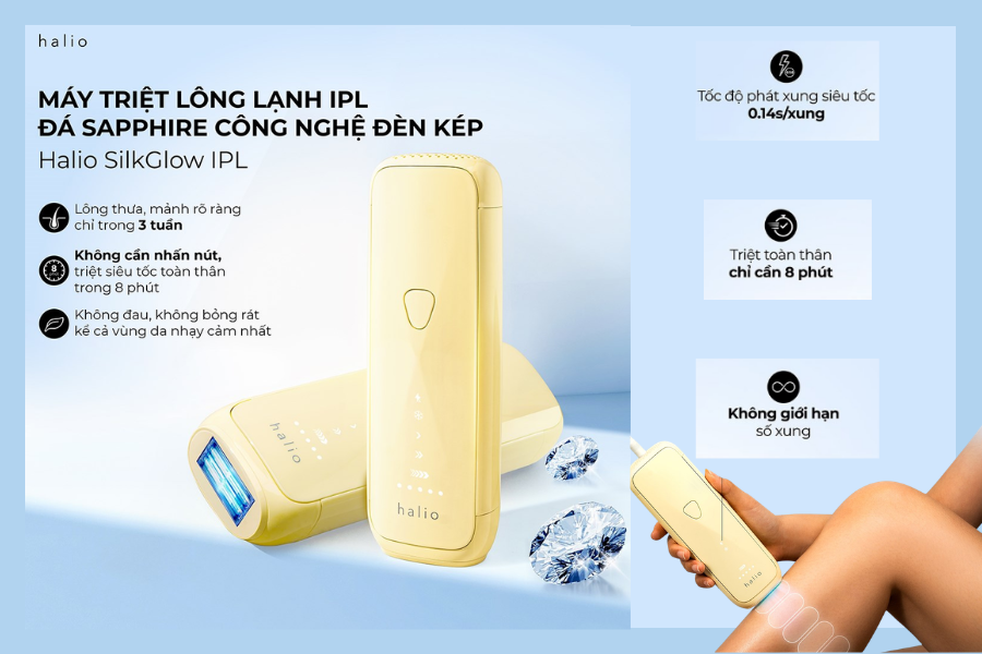 Trong xu hướng làm đẹp hiện đại, triệt lông tại nhà đang dần thay thế thói quen phụ thuộc vào spa. Máy Triệt Lông Halio SilkGlow IPL Sapphire Cooling Hair Removal Device được phát triển nhằm đáp ứng nhu cầu chăm sóc cá nhân chủ động, riêng tư và tiết kiệm.