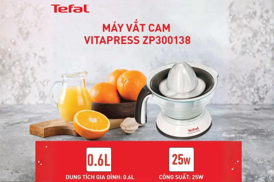 Một ly nước cam tươi mỗi ngày không chỉ giúp bổ sung vitamin C mà còn hỗ trợ tăng đề kháng và cải thiện sức khỏe tim mạch. Tuy nhiên, việc vắt cam thủ công thường mất thời gian và tốn nhiều lực tay, đặc biệt khi cần chuẩn bị cho cả gia đình. Máy vắt cam Tefal ZP300138 Trắng ra đời nhằm mang đến giải pháp ép cam nhanh gọn, tiện lợi và sạch sẽ hơn trong gian bếp hiện đại. Với thiết kế nhỏ gọn, thao tác đơn giản cùng hiệu năng ổn định, sản phẩm giúp bạn dễ dàng thưởng thức nước cam tươi nguyên chất chỉ trong vài phút. Đây là lựa chọn phù hợp cho gia đình trẻ, người bận rộn hoặc bất kỳ ai muốn duy trì thói quen sống lành mạnh mỗi ngày.