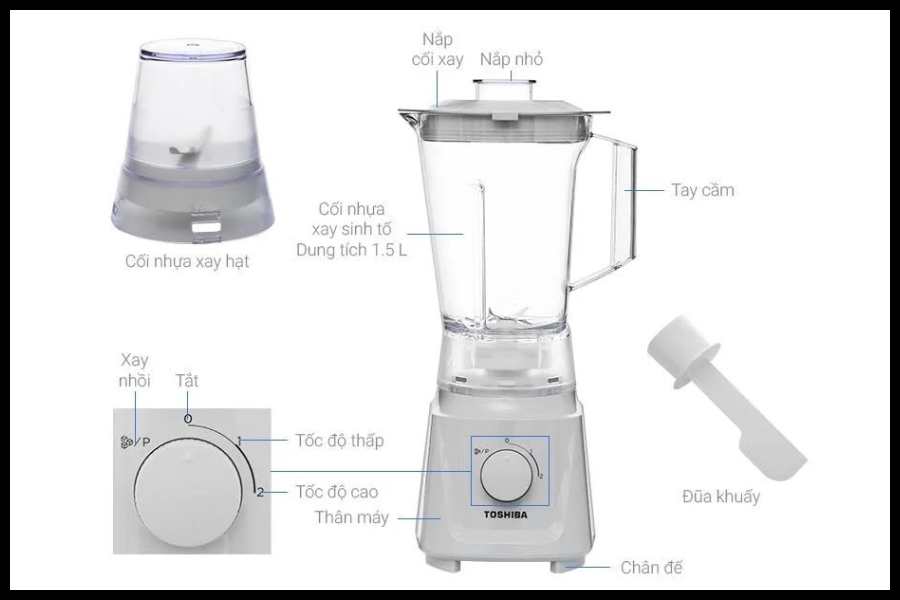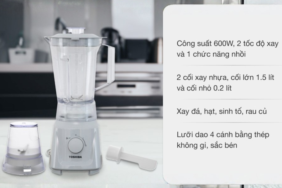 Cối xay khô tiện lợi: Đi kèm với cối xay chính là cối xay khô chuyên dụng, rất tiện lợi để xay các loại hạt, gia vị khô, hoặc cà phê. Điều này giúp tăng tính linh hoạt và đa năng cho chiếc Máy xay sinh tố Toshiba MX-60T(H).