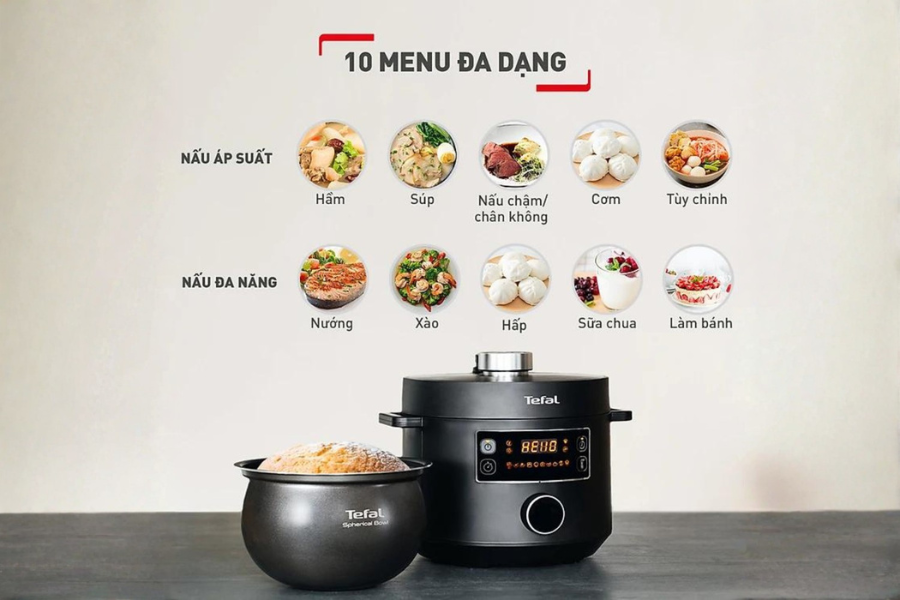 3. Đa dạng thực đơn với 10 chương trình nấu thông minh trên Tefal CY754830