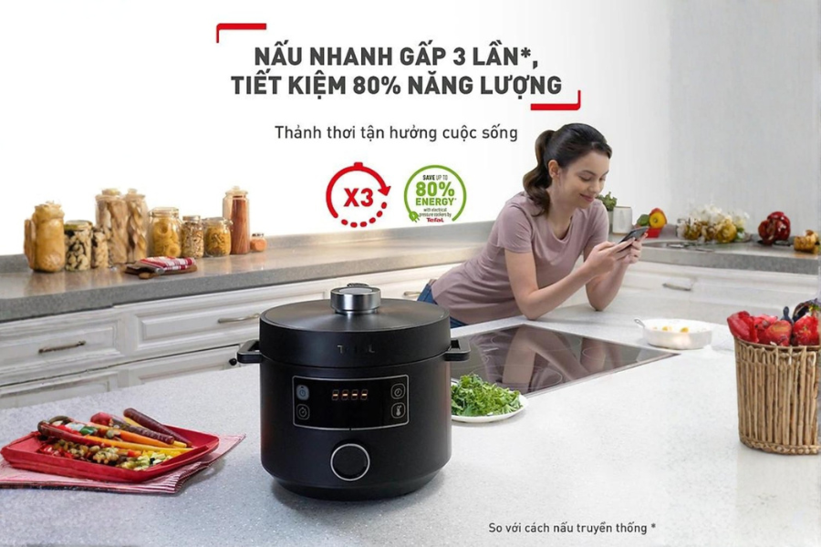 Độ dày lý tưởng của lòng nồi Nồi áp suất điện đa năng Tefal Turbo Cuisine CY754830 5L cho phép nó tích trữ nhiệt lượng vô cùng hiệu quả. Ngay cả khi nồi đã kết thúc chu trình nấu và ngắt điện, nhiệt độ bên trong vẫn được duy trì ở mức cao trong một khoảng thời gian dài. Điều này có nghĩa là thực phẩm tiếp tục được làm mềm thêm bằng nhiệt dư, giúp tiết kiệm đáng kể năng lượng tiêu thụ hàng tháng cho gia đình bạn. Trong bối cảnh giá năng lượng ngày càng tăng năm 2026, việc sở hữu một thiết bị tiết kiệm điện như Nồi áp suất điện đa năng Tefal Turbo Cuisine CY754830 5L là một khoản đầu tư vô cùng thông minh. Khả năng giữ ấm tự động sau khi nấu cũng giúp bữa cơm luôn sẵn sàng mà không cần bạn phải hâm đi hâm lại nhiều lần làm mất chất dinh dưỡng.