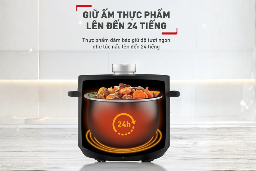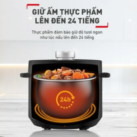 - Thuận tiện với chức năng giữ ấm tự động 24 giờ và hẹn giờ nấu lên đến 12 giờ.