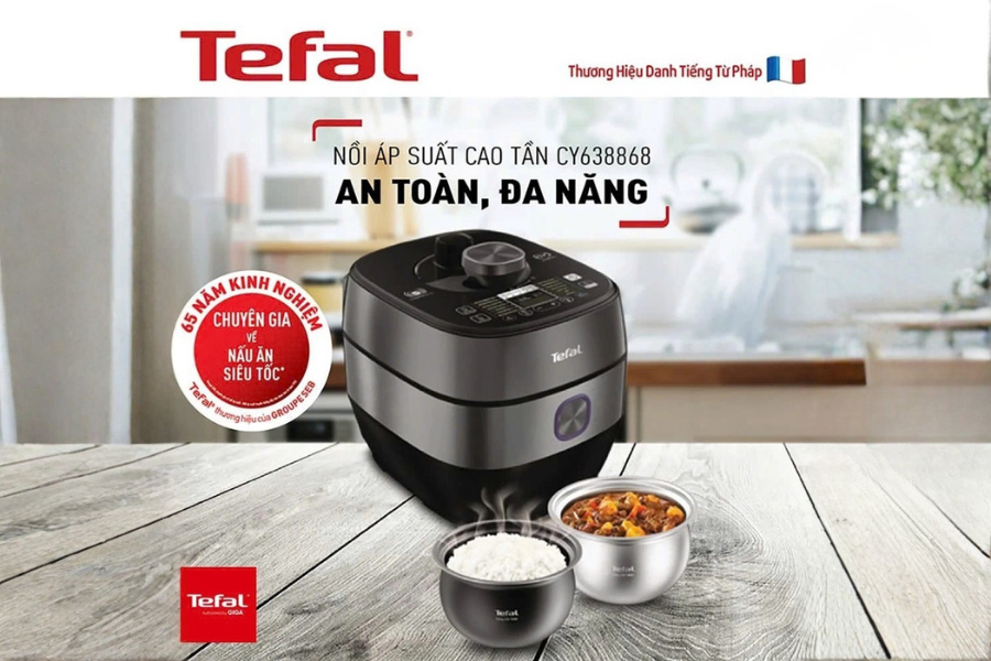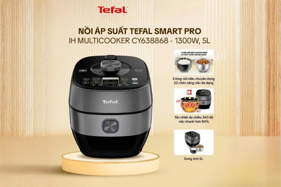 Trong kỷ nguyên của nhà thông minh năm 2026, việc sở hữu một thiết bị nấu nướng đa năng không chỉ đơn thuần là để làm chín thực phẩm mà còn phải bảo tồn trọn vẹn tinh hoa dinh dưỡng. Nồi áp suất điện Tefal Smart Pro CY638868 xuất hiện như một “trợ lý ẩm thực” thực thụ, mang đến sự kết hợp hoàn hảo giữa công suất mạnh mẽ 1300W và hệ thống điều khiển trí tuệ nhân tạo độc đáo. Với dung tích 5 lít lý tưởng, sản phẩm này không chỉ đáp ứng nhu cầu ăn uống hàng ngày của gia đình từ 4-6 thành viên mà còn là tâm điểm sang trọng trong gian bếp nhờ thiết kế tinh tế theo tiêu chuẩn Pháp. Điểm đột phá lớn nhất khiến Nồi áp suất điện Tefal Smart Pro CY638868 khác biệt hoàn toàn so với các dòng nồi áp suất điện tử thông thường chính là công nghệ Opti-Taste giúp tăng cường hương vị tự nhiên của món ăn một cách đáng kinh ngạc. Không còn phải dành hàng giờ đồng hồ để hầm xương hay nấu cháo, chiếc nồi này giúp bạn tiết kiệm tới 80% thời gian nhưng vẫn đảm bảo món ăn mềm tan, đậm đà đúng điệu. Hãy cùng chúng tôi đi sâu vào khám phá những tính năng “vàng” giúp Nồi áp suất điện Tefal Smart Pro CY638868 trở thành sự lựa chọn số một của các gia đình Việt hiện đại ngày nay.