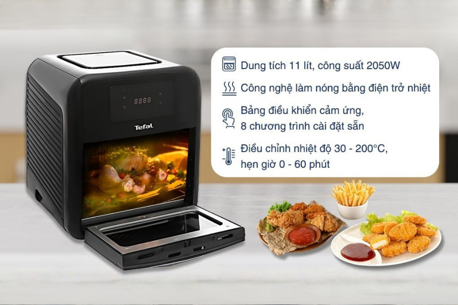 • Nồi chiên không dầu Tefal có dung tích lớn 11 lít dùng được cho 8 người