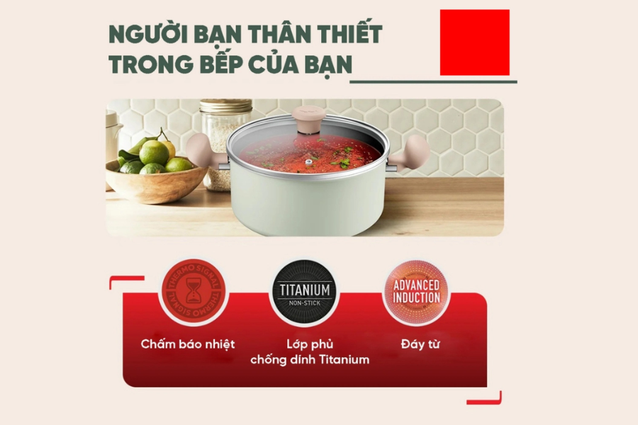 1. Công nghệ chống dính Titanium: Sự bền bỉ vượt thời gian của Nồi chống dính Tefal So Matcha 24cm (G1794695)