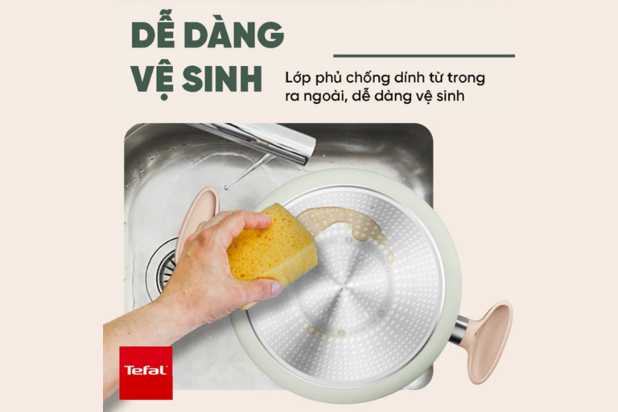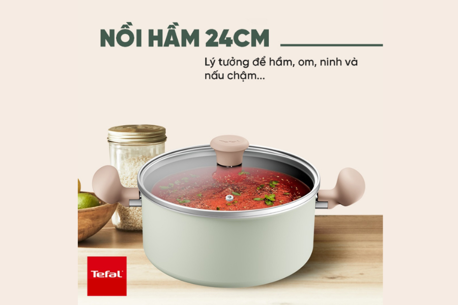 Bên cạnh khả năng chống dính tuyệt vời, lớp phủ Titanium trên chiếc nồi 24cm này còn đóng vai trò như một lớp truyền nhiệt trung gian cực kỳ hiệu quả cho món ăn. Nhiệt lượng từ đáy nồi được dẫn truyền nhanh chóng và tỏa đều khắp bề mặt lòng nồi, giúp thực phẩm chín đồng nhất mà không xảy ra hiện tượng cháy khét cục bộ ở các điểm nóng. Điều này đặc biệt quan trọng với các món hầm cần thời gian ninh lâu, nơi mà sự ổn định của nhiệt độ quyết định độ mềm mọng và đậm đà của từng miếng thịt hay củ quả. Việc vệ sinh nồi sau khi sử dụng cũng trở nên nhẹ nhàng hơn bao giờ hết, bạn chỉ cần dùng một chiếc khăn mềm và ít nước rửa chén là lòng nồi đã sạch bóng như mới mà không cần cọ xát mạnh tay. Sự kết hợp giữa độ bền cơ học và tính tiện dụng đã đưa dòng Nồi chống dính Tefal So Matcha 24cm (G1794695) trở thành lựa chọn hàng đầu cho những ai yêu thích sự chuyên nghiệp và gọn gàng trong gian bếp gia đình. Mỗi bữa cơm giờ đây không còn là gánh nặng dọn dẹp, giúp bạn có thêm thời gian quý giá để trò chuyện và nghỉ ngơi bên những người thân yêu sau một ngày làm việc mệt mỏi.