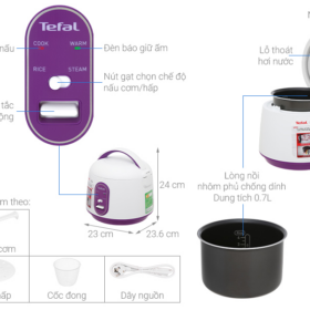 Một số đặc điểm nổi bật của Nồi cơm điện cơ mini Tefal RK224168 – 0.7L – 300W:Nồi cơm điện có dung tích 0.7 lít thích hợp 1 – 2 dùng