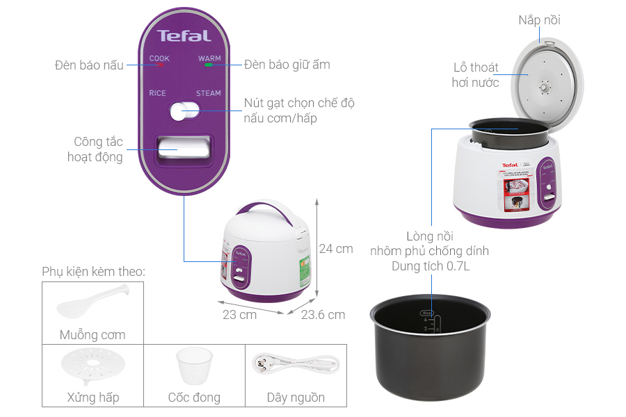 - Nồi cơm điện cơ Tefal có 2 chức năng nấu và giữ ấm