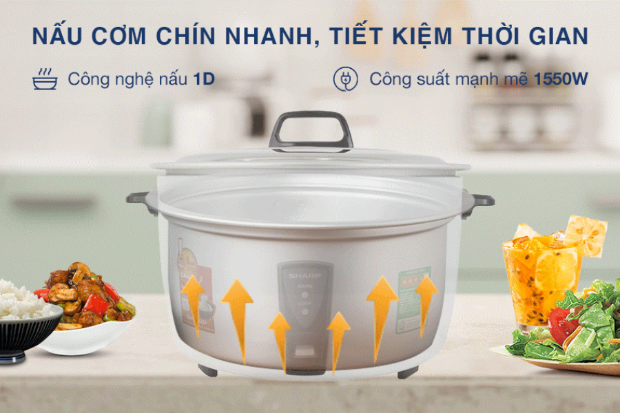 Nồi cơm điện Sharp KSH-D55V được trang bị mức công suất phù hợp với dung tích lớn, giúp quá trình nấu cơm diễn ra nhanh và ổn định hơn. Khi sử dụng thực tế, người dùng có thể dễ dàng nhận thấy thời gian nấu được rút ngắn đáng kể, đặc biệt trong những bữa ăn đông người hoặc khi cần chuẩn bị cơm liên tục.