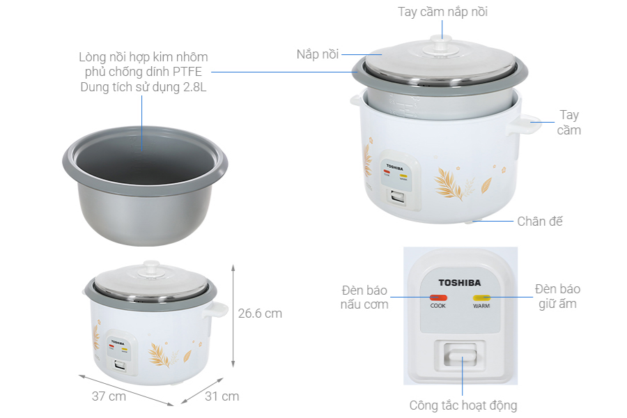 I. Tổng quan chi tiết về thiết kế và cấu tạo của của Nồi cơm Toshiba RC-28MH1PV(G)
