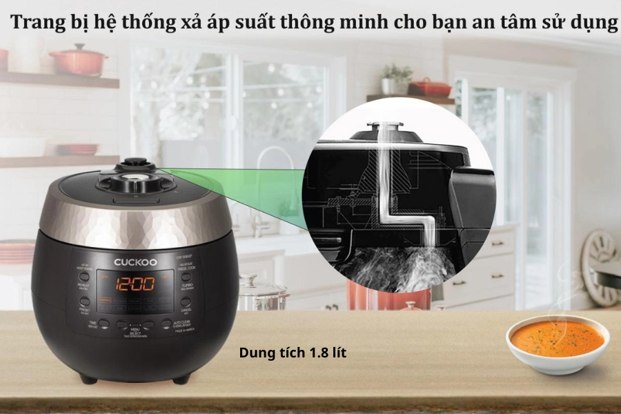- Nồi cơm điện tử áp suất Cuckoo 1.8 lít CRP-R1000F/BKGBCRVNCV dung tích 1.8 lít phù hợp gia đình 4–6 người