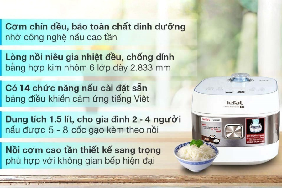 Một số đặc điểm nổi bật của Nồi cơm điện tử cao tần Tefal RK762168 – 1.5L – 1200W: