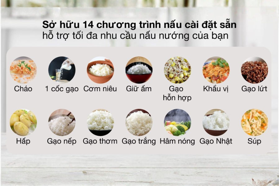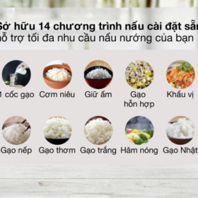 - Gồm 12 chương trình nấu chuyên dụng đa dạng để lựa chọn