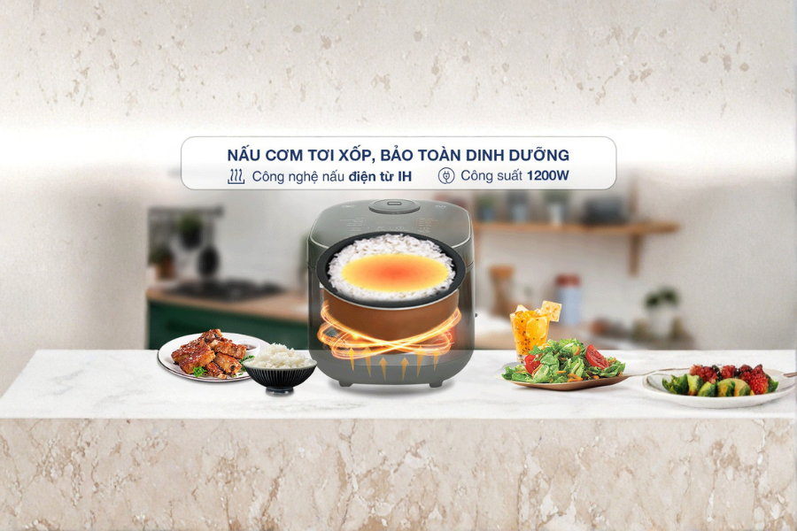 • Trang bị công nghệ cao tần giúp nấu cơm nhanh chóng và đồng đều