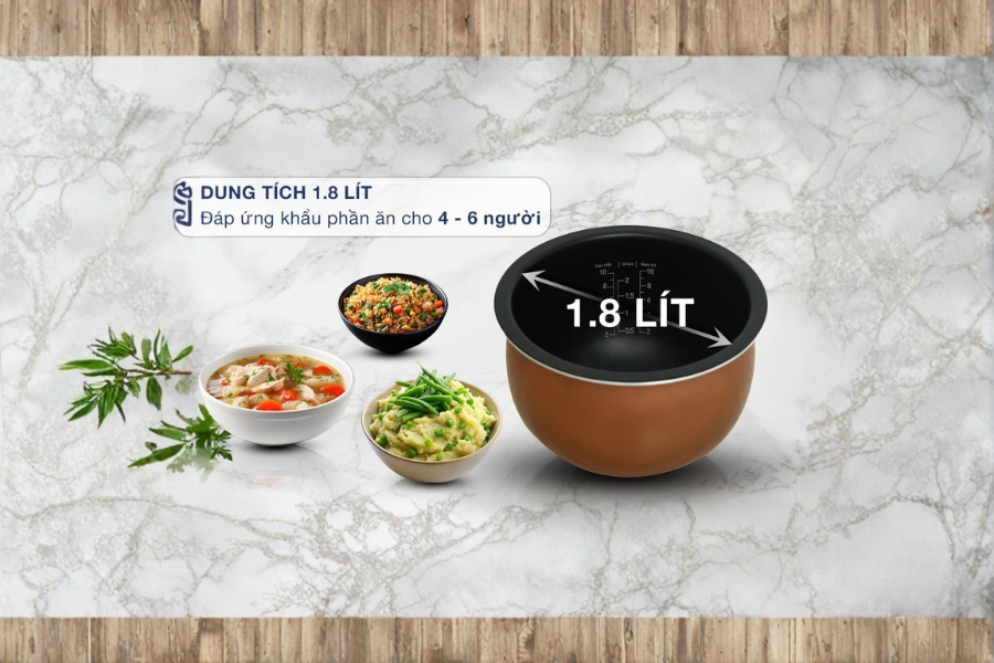 • Nồi cơm điện dung tích 1.8 lít cho phép nấu được một lượng cơm lớn