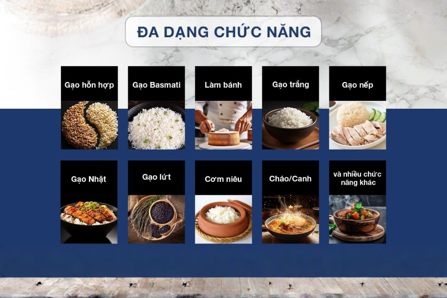 • Chế độ nấu đa dạng: gạo lứt, gạo Nhật/Sushi, gạo nếp, gạo Basmati,…