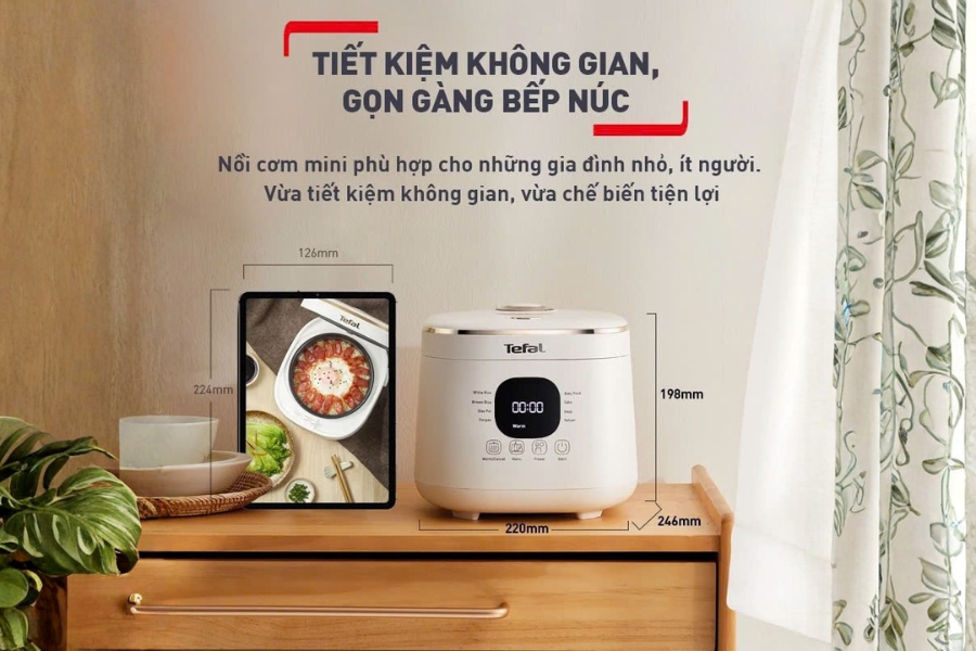 • Nồi cơm điện tử nhỏ gọn, màu sắc hài hòa với mọi không gian bếp