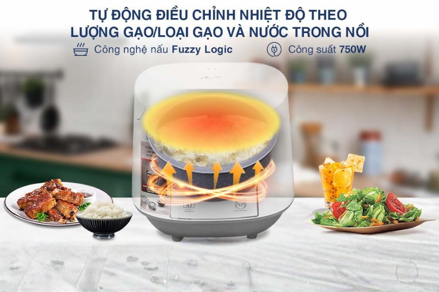 • Công suất 750W giúp nấu nhanh, tiết kiệm điện.