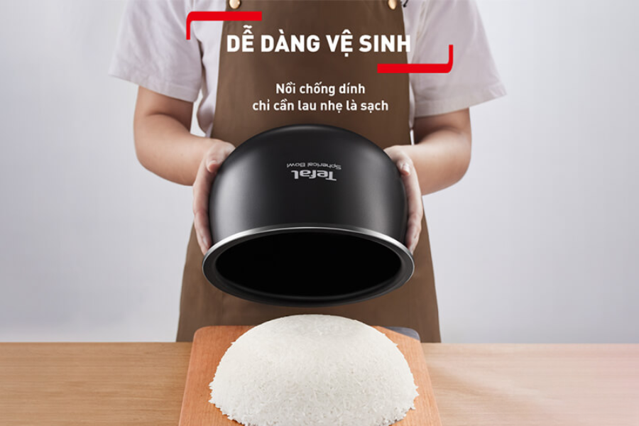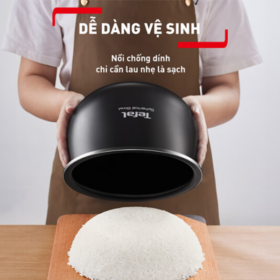 Bề mặt chống dính giúp người dùng dễ dàng làm sạch sau khi nấu. Chỉ cần sử dụng miếng bọt biển mềm và nước ấm là có thể loại bỏ hoàn toàn cặn cơm. Điều này không chỉ tiết kiệm thời gian mà còn giúp bảo vệ lớp phủ lâu dài. Việc vệ sinh nhẹ nhàng còn hạn chế trầy xước bề mặt lòng nồi. Khi bảo quản đúng cách, tuổi thọ của nồi được kéo dài đáng kể. Đây là yếu tố giúp Nồi cơm điện tử Tefal RK736B68 – 1.8L – 750W duy trì hiệu suất ổn định sau nhiều năm sử dụng.
