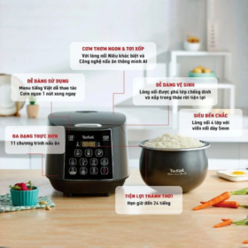 Trong căn bếp hiện đại, một chiếc nồi cơm điện tử chất lượng không chỉ giúp nấu cơm ngon mà còn mang đến sự tiện nghi và tiết kiệm thời gian đáng kể cho gia đình. Nồi cơm điện tử Tefal RK736B68 – 1.8L – 750W là lựa chọn được nhiều người tiêu dùng tin tưởng nhờ thiết kế bền bỉ, công nghệ nấu thông minh và khả năng chế biến đa dạng món ăn. Với dung tích 1.8L phù hợp cho gia đình 4–6 người cùng công suất 750W ổn định, sản phẩm đáp ứng tốt nhu cầu sử dụng hàng ngày. Không chỉ đảm bảo cơm chín đều, mềm dẻo, mẫu nồi này còn tích hợp nhiều chương trình nấu tự động tiện lợi. Nếu bạn đang tìm kiếm một chiếc nồi cơm điện tử đa chức năng, tiết kiệm điện và bền bỉ theo thời gian, đây là lựa chọn đáng cân nhắc.