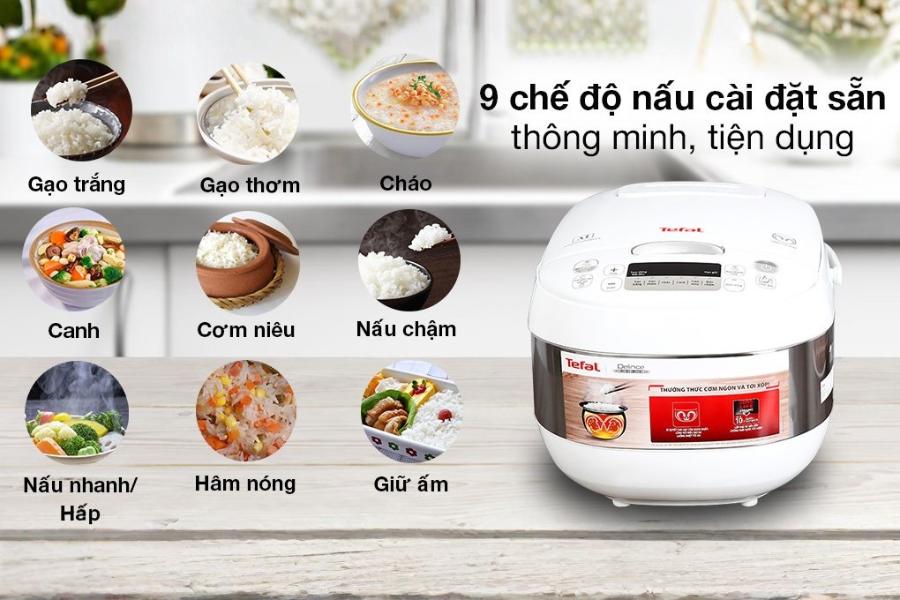Sẽ là một thiếu sót lớn nếu chúng ta chỉ xem Nồi cơm điện tử Tefal RK752168 – 1.8L – 750W là một thiết bị nấu cơm thuần túy vì nó thực sự là một “người quản gia” đa năng trong bếp. Với 9 chế độ nấu được lập trình sẵn, bạn có thể dễ dàng chế biến hàng loạt các món ăn hấp dẫn từ đơn giản đến phức tạp chỉ với một vài thao tác nhấn nút trên Nồi cơm điện tử Tefal RK752168 – 1.8L – 750W. Bạn muốn nấu một nồi cháo sánh mịn cho bé, làm một chiếc bánh bông lan mềm xốp hay hấp rau củ giữ nguyên vitamin? Tất cả đều nằm trong tầm tay của Nồi cơm điện tử Tefal RK752168 – 1.8L – 750W nhờ vào thuật toán điều chỉnh nhiệt độ và thời gian tối ưu cho từng loại thực phẩm. Việc tích hợp nhiều chức năng trong một không chỉ giúp tiết kiệm diện tích gian bếp mà còn giúp bạn tiết kiệm chi phí mua sắm thêm nhiều loại máy móc khác. Hãy cùng khám phá sự linh hoạt tuyệt vời mà Nồi cơm điện tử Tefal RK752168 – 1.8L – 750W mang lại cho thực đơn hàng ngày của gia đình bạn.