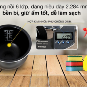 - Vỏ ngoài là Inox sáng bóng, tăng độ hiện đại, tinh tế cho nồi
