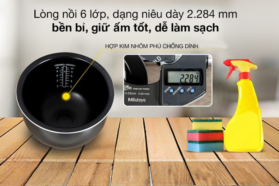 - Lòng nồi được làm bằng sắt chống dính, truyền nhiệt nhanh