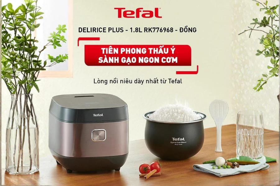 Giữa rất nhiều lựa chọn trong phân khúc nồi cơm điện tử dung tích lớn, Nồi cơm điện tử Tefal RK776968 1.8L đồng nổi bật nhờ sự kết hợp hài hòa giữa công nghệ nấu hiện đại và thiết kế sang trọng. Không chỉ đáp ứng nhu cầu nấu cơm trắng thơm dẻo cho gia đình 4–6 người, sản phẩm còn tích hợp nhiều chế độ nấu tự động giúp đa dạng hóa thực đơn mỗi ngày. Dung tích 1.8L lý tưởng cho những bữa cơm đông đủ, trong khi hệ thống kiểm soát nhiệt thông minh đảm bảo hạt cơm chín đều, không nhão đáy hay khô mặt. Tông màu đồng tinh tế góp phần nâng tầm không gian bếp, phù hợp với xu hướng nội thất hiện đại. Trong bài viết này, chúng ta sẽ cùng đánh giá chi tiết hiệu suất, độ bền, trải nghiệm thực tế và lý do vì sao Nồi cơm điện tử Tefal RK776968 1.8L đồng là lựa chọn đáng cân nhắc.