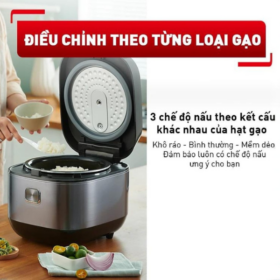 Bảng điều khiển điện tử được thiết kế rõ ràng với màn hình hiển thị trực quan. Người dùng có thể lựa chọn chế độ chỉ bằng vài thao tác cơ bản mà không cần đọc hướng dẫn quá nhiều lần. Thời gian nấu còn lại được hiển thị cụ thể giúp chủ động sắp xếp công việc khác. Đây là điểm tiện lợi đáng kể so với nồi cơ truyền thống vốn không hiển thị thời gian.