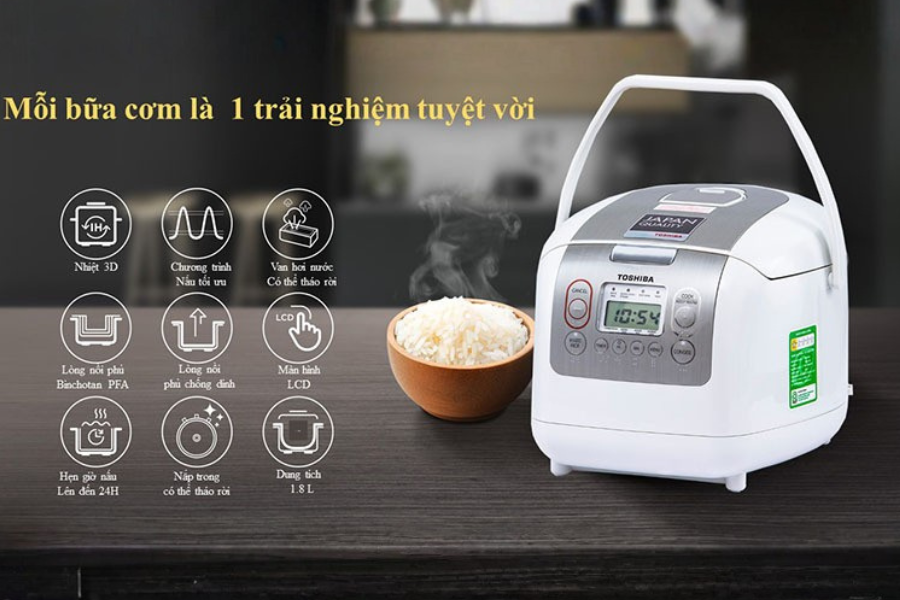 • Nồi cơm điện Toshiba dung tích 1.8 lít thích hợp cho gia đình có khoảng 4 – 6 người