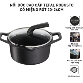 Trong xu hướng tiêu dùng năm 2026, khi độ bền và tính an toàn được đặt lên hàng đầu, chiếc Nồi đúc cao cấp Tefal Robusto đã xác lập một tiêu chuẩn mới cho phân khúc dụng cụ nấu nướng chuyên nghiệp. Khác biệt hoàn toàn với các dòng nồi dập thông thường, Robusto sở hữu cấu trúc nhôm đúc nguyên khối siêu dày, mang lại khả năng chịu nhiệt và chống biến dạng cực cao, ngay cả dưới tác động của các dòng bếp từ công suất lớn. Thiết kế tối giản với sắc đen nhám sang trọng không chỉ phù hợp với mọi không gian nội thất mà còn phản ánh tư duy đầu tư dài hạn cho sức khỏe gia đình. Bằng việc tích hợp lớp phủ chống dính Titanium gia cường cùng công nghệ báo nhiệt Thermo-Signal độc quyền, Tefal đã tối ưu hóa quy trình chế biến, giúp thực phẩm chín đều, giữ trọn dưỡng chất và hoàn toàn không chứa các tạp chất gây hại như PFOA. Việc lựa chọn dòng nồi đúc Robusto không chỉ dừng lại ở việc mua sắm một món đồ gia dụng, mà là sự đảm bảo cho hiệu suất nấu nướng ổn định và an toàn tuyệt đối trong suốt nhiều năm sử dụng. Hãy cùng phân tích chi tiết các thông số kỹ thuật và ưu điểm vượt trội của siêu phẩm đúc nguyên khối này ngay sau đây.