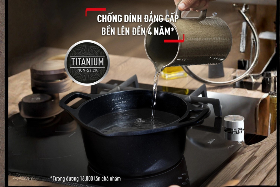 2. Lớp chống dính Titanium gia cường: An toàn tuyệt đối cho sức khỏe