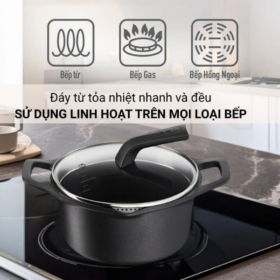 - Nồi đúc với chất liệu hợp kim nhôm phủ chống dính Titanium cao cấp
