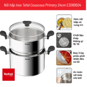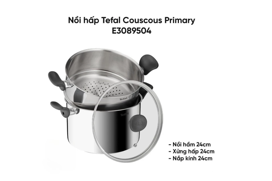 Một số đặc điểm nổi bật của Nồi hấp inox Tefal Couscous Primary 24cm E3089504: