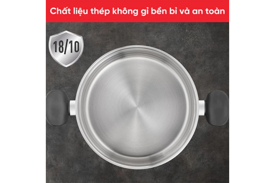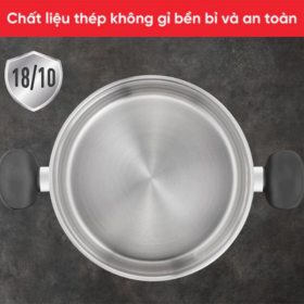Nền tảng tạo nên chất lượng vượt trội của chiếc Nồi hấp inox Tefal Couscous Primary 24cm E3089504 chính là chất liệu thép không gỉ 18/10 cao cấp (hay còn gọi là inox 304). Đây là loại vật liệu được các chuyên gia gia dụng hàng đầu thế giới khuyên dùng nhờ đặc tính chống ăn mòn xuất sắc, không bị oxy hóa hay phản ứng với thực phẩm ngay cả khi tiếp xúc lâu ngày với hơi muối hay các axit tự nhiên. Bề mặt inox sáng bóng không chỉ mang lại vẻ ngoài tinh tế cho sản phẩm mà còn ngăn chặn sự trú ngụ của vi khuẩn, giúp việc vệ sinh sau mỗi lần nấu nướng trở nên vô cùng đơn giản. Trong bối cảnh an toàn thực phẩm là ưu tiên số một hiện nay, việc sử dụng một chiếc nồi hấp từ inox chuẩn Pháp giúp người nội trợ hoàn toàn yên tâm vì không có bất kỳ hóa chất độc hại nào thôi nhiễm vào thức ăn dưới tác động của nhiệt độ cao. Độ dày thân nồi được tính toán kỹ lưỡng giúp sản phẩm chịu được va đập tốt, không bị biến dạng hay móp méo sau nhiều năm sử dụng liên tục trong môi trường bếp núc khắc nghiệt.