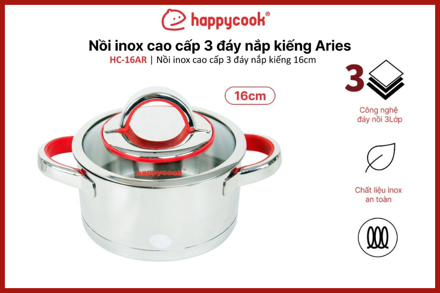 | Tên sản phẩm | Nồi inox 3 Đáy Happy Cook Aries HC-16AR |