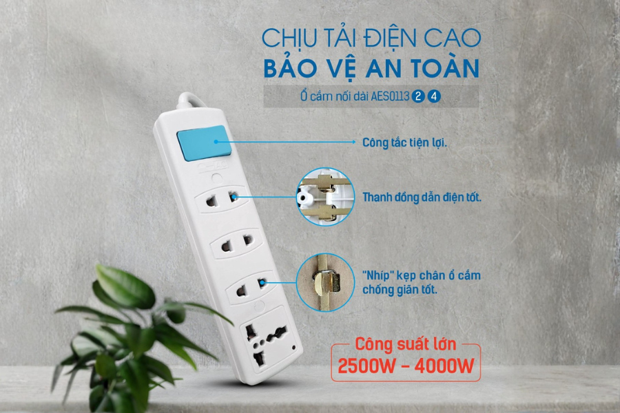 Một điểm mạnh đáng chú ý của Ổ cắm nối dài an toàn AC AES011343 là khả năng tự ngắt khi xảy ra tình trạng quá tải. Khi tổng công suất các thiết bị подключ vượt quá mức cho phép, hệ thống sẽ tự động ngắt điện để bảo vệ cả ổ cắm và thiết bị đang sử dụng. Tính năng này đặc biệt quan trọng trong bối cảnh người dùng thường kết nối nhiều thiết bị như nồi cơm, ấm siêu tốc, máy tính cùng lúc. Nhờ cơ chế bảo vệ này, nguy cơ cháy nổ do quá tải điện được giảm thiểu đáng kể. Sau khi khắc phục nguyên nhân, người dùng có thể reset lại và tiếp tục sử dụng bình thường. Đây là một trong những yếu tố giúp sản phẩm được đánh giá cao về độ an toàn.