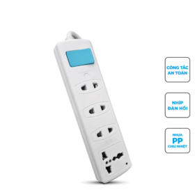 Sản phẩm được trang bị nhiều ổ cắm với khoảng cách hợp lý, giúp cắm được nhiều loại phích khác nhau mà không bị vướng. Đây là điểm cộng lớn khi sử dụng các thiết bị có kích thước adapter lớn. Ngoài ra, công tắc nguồn tích hợp giúp người dùng dễ dàng bật tắt điện khi cần thiết. Điều này không chỉ tiện lợi mà còn góp phần tiết kiệm điện năng hiệu quả.