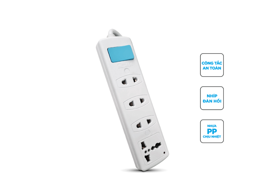 - Dây điện dài 3m, dễ dàng di chuyển ổ cắm đến mọi nơi, kết nối các thiết bị ở cách xa nhau.