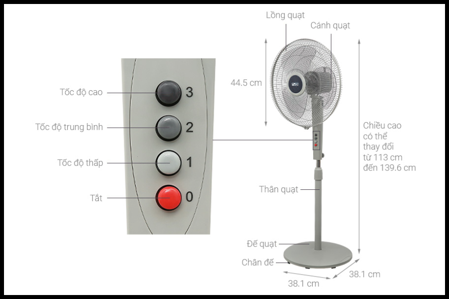 | Công suất – Mức gió | 55W – 3 mức gió |