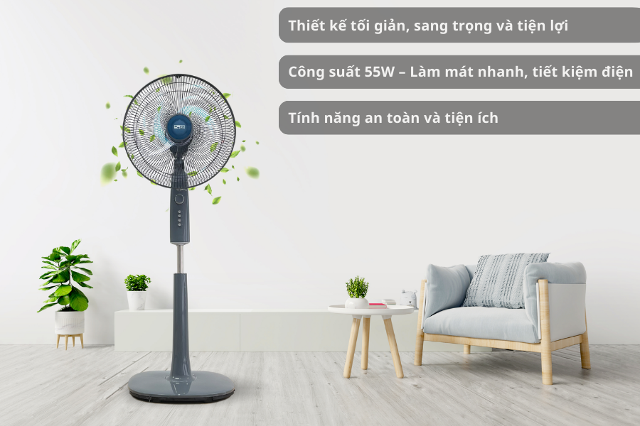 Nhờ khả năng đảo gió hiệu quả, quạt không chỉ làm mát mà còn hỗ trợ lưu thông không khí, giảm cảm giác bí bách, tạo môi trường thoáng đãng và dễ chịu hơn.