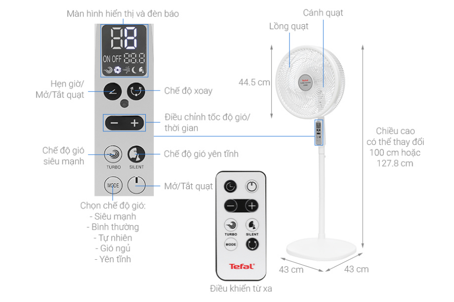 Quạt đứng Tefal TB Silence Plus VH689690-Trắng Cánh Trắng không chỉ đơn thuần là thiết bị làm mát mà còn góp phần nâng cao chất lượng không gian sống nhờ khả năng vận hành êm ái, thiết kế tinh tế và hiệu suất ổn định. Với màu trắng thanh lịch, luồng gió dễ chịu và độ bền cao, sản phẩm đáp ứng tốt nhu cầu sử dụng hàng ngày của nhiều gia đình hiện đại. Khi được lựa chọn tại điện máy Tín Phong, chiếc quạt này trở thành giải pháp làm mát đáng tin cậy, giúp bạn và gia đình tận hưởng cảm giác mát mẻ, dễ chịu trong suốt mùa nắng nóng.