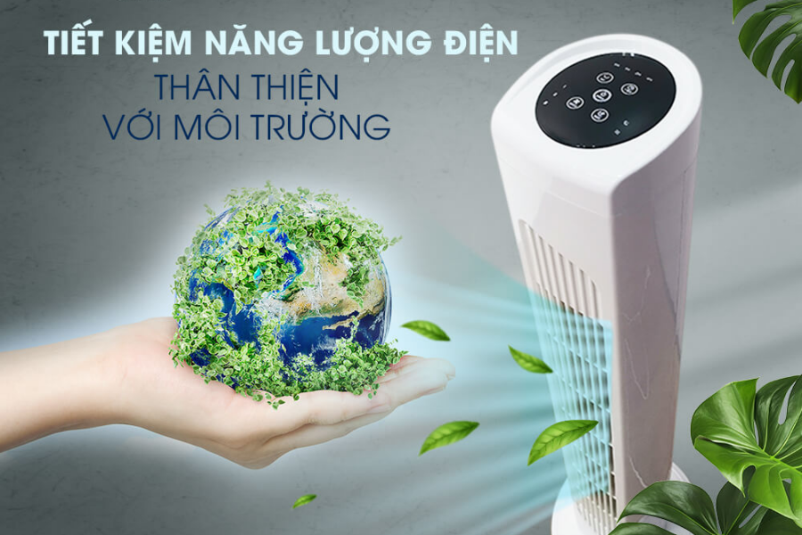 Thiết kế tháp đứng cũng giúp quạt không chiếm nhiều diện tích sàn, phù hợp với không gian sống hiện đại.