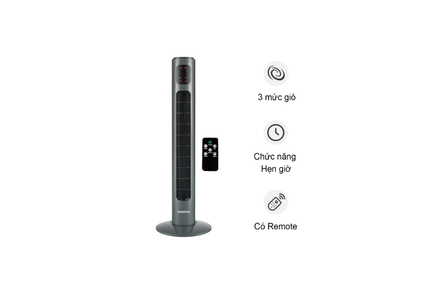 Một trong những điểm giúp Quạt tháp Shimono SM-TF38SP(G) ghi điểm trong trải nghiệm người dùng chính là khả năng điều khiển từ xa. Thay vì phải lại gần thiết bị để thao tác như các dòng quạt truyền thống, người dùng có thể dễ dàng điều chỉnh mọi chức năng chỉ bằng một chiếc remote nhỏ gọn đi kèm. Điều này đặc biệt hữu ích trong các tình huống sử dụng thực tế như khi đang nằm nghỉ, làm việc hoặc vào ban đêm khi không muốn di chuyển nhiều.