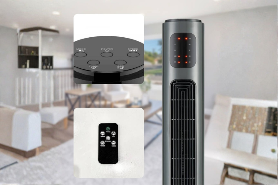 - Quạt tháp trang bị điều khiển từ xa bằng Remote cực kỳ tiện lợi