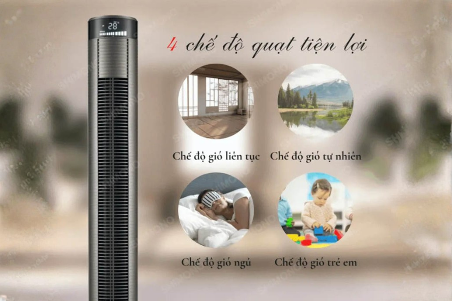 Quạt tháp Shimono SM-TF46LE thường được trang bị nhiều chế độ gió khác nhau, từ nhẹ nhàng đến mạnh mẽ. Người dùng có thể dễ dàng điều chỉnh mức gió phù hợp với nhu cầu sử dụng, từ nghỉ ngơi đến làm việc. Điều này giúp tăng trải nghiệm sử dụng và tiết kiệm điện năng. Việc có nhiều chế độ gió cũng giúp sản phẩm phù hợp với nhiều đối tượng, từ người già đến trẻ nhỏ. Đặc biệt, chế độ gió nhẹ rất phù hợp khi sử dụng ban đêm, tránh gây lạnh hoặc khó chịu khi ngủ.